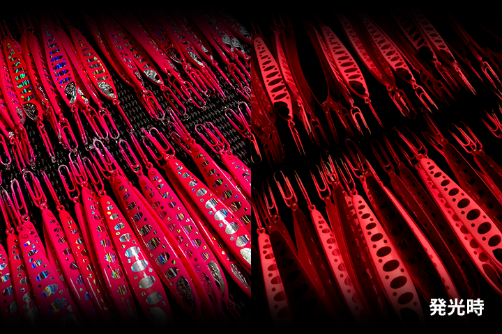 ローライト時、おぼろげにピンクに発光します。